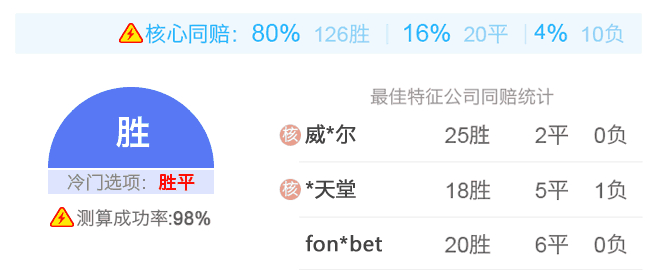 ◆赢家团队通过核心公司同赔特征统计,提供杀冷门选项的意见;