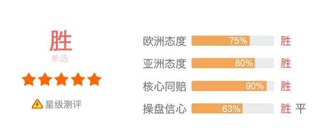 ◆赢家团队依据欧亚组合,核心同赔、操盘信心四方面概率进行综合测评;