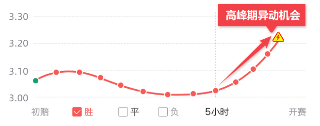 "赔异动":当最新赔率对比5小时赔率升降比例达到7%时提供预警;